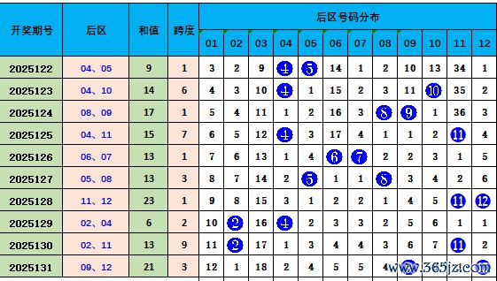 上期后区中奖号码为09 12,近10期后区抽象奇偶比8:12,偶数出号占优,本期推选偶偶组合02,10。